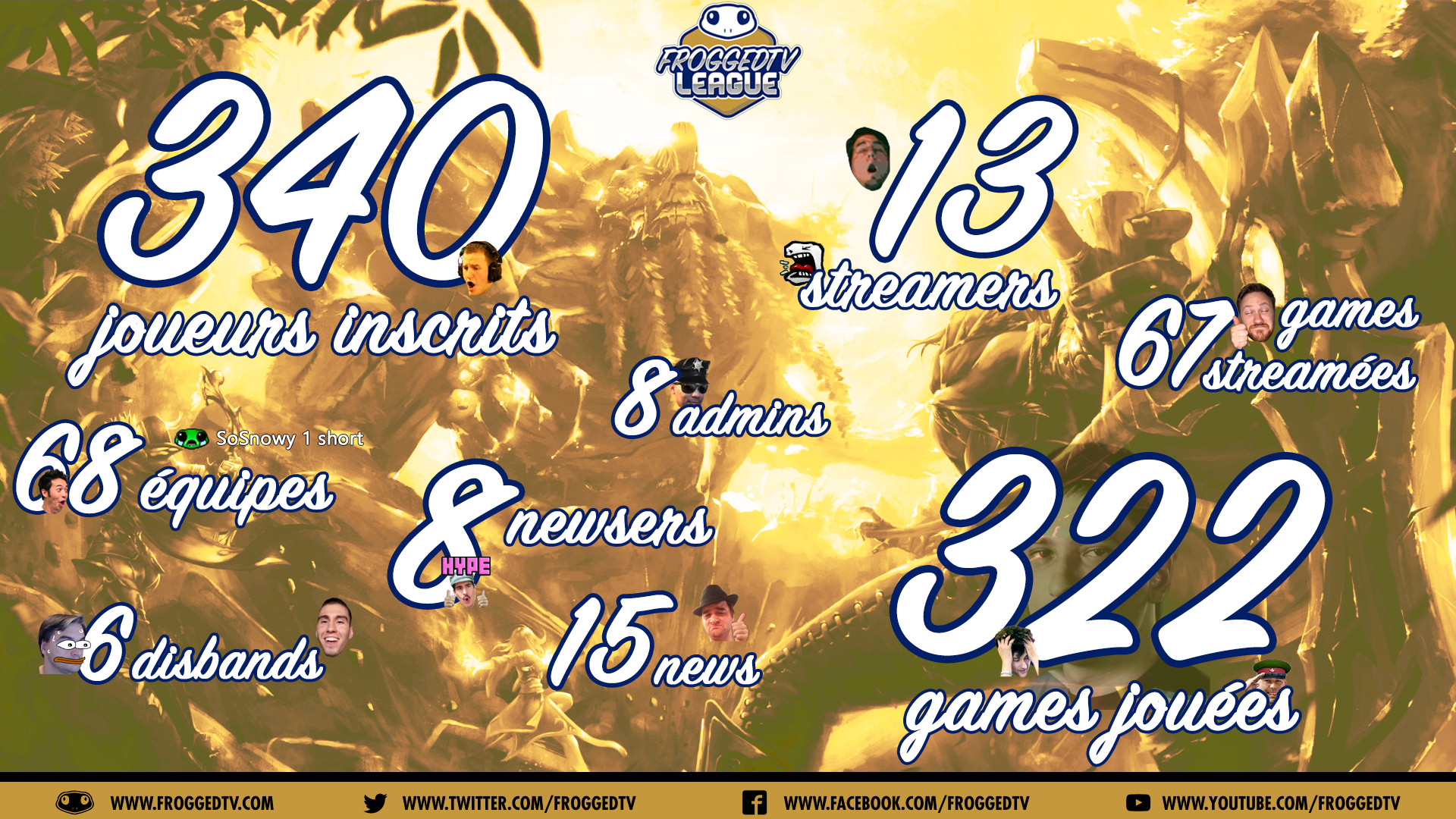 Concernant la suite des informations vous seront données d'ici quelques jours, mais nous pouvons déjà vous dire qu'une saison 2 aura bien lieu. Un tournoi de rentrée prendra également place, le FroggedTV Brawl #2. Ce tournoi en format ronde suisse permettra à l'ensemble de la communauté de retrouver un rythme qui permette d'aborder la nouvelle saison de la league dans les meilleures conditions. En attendent je vous souhaite un bon marathon à tous sur la chaine FroggedTV
